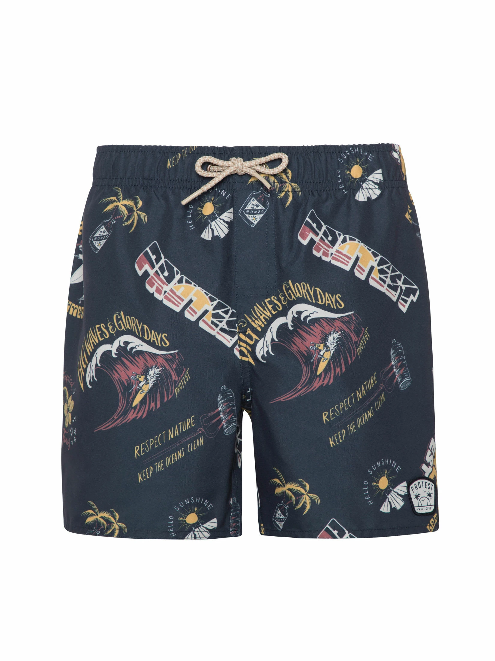 Hier ist die tolle PRTHARRIS JR von Protest. Diese großartige Badeshorts ist mit einem tollen Allover-Minimuster aus Text, Wellen und sommerlichen Motiven bedruckt. Der elastische Bund hat ein Zickzack-Zugband. Die Badeshorts hat eine kurze Länge und reicht bis zur Mitte des Oberschenkels. Sie hat eine normale Passform, eine Gesäßtasche und einen Innenslip, der zusätzlichen Schutz bietet. Mit der PRTHARRIS JR von Protest hast du Spaß in der Sonne.