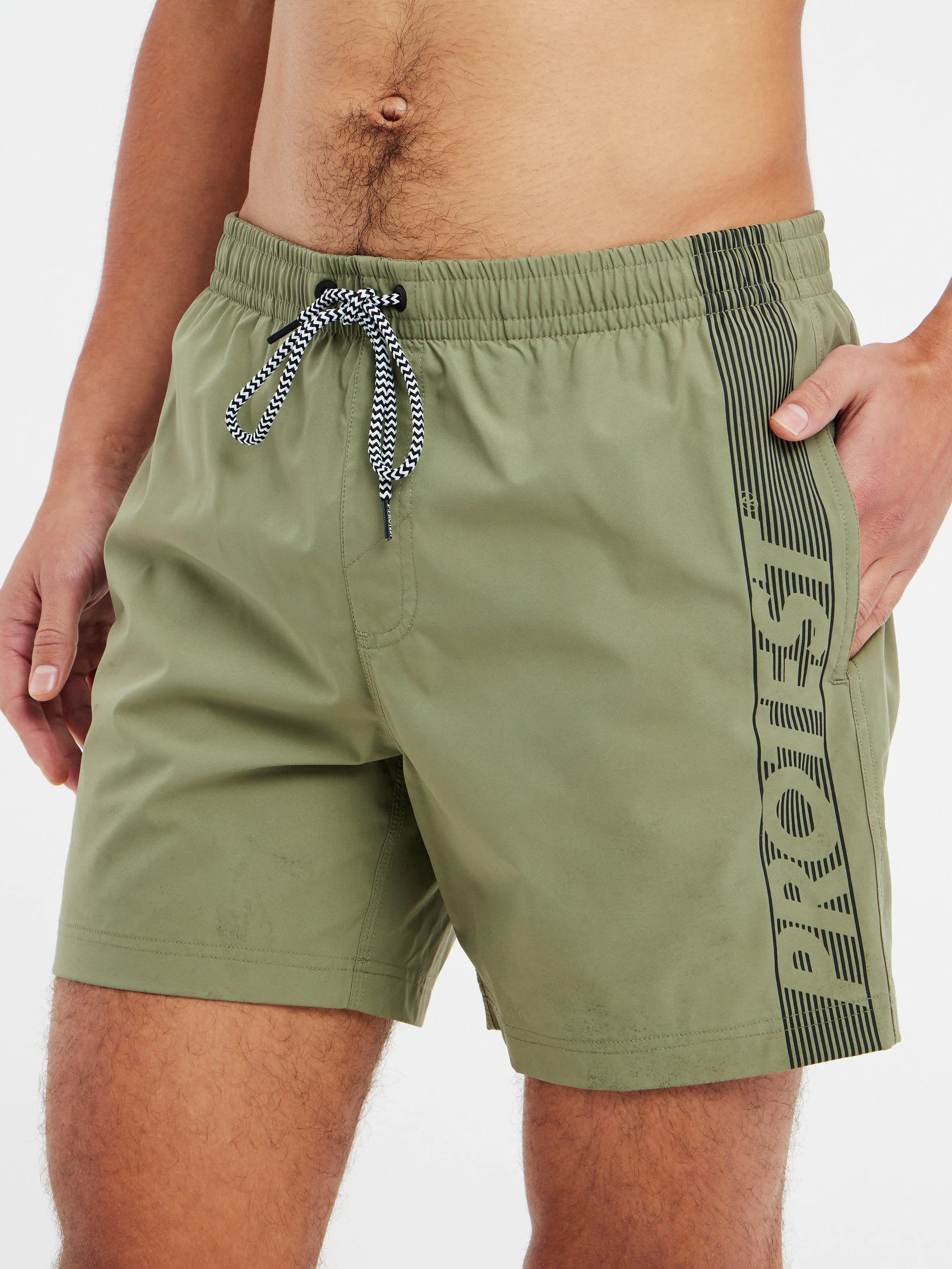 Hier ist die PRTFAREL von Protest. Die Shorts ist 40 cm lang und reicht bis zum Knie. Die Seite dieser Badeshorts ist mit dem Protest-Logo bedruckt. Der elastische Bund hat ein Zugband. Der Innenslip bietet zusätzlichen Schutz. Außerdem hat die Shorts Seitentaschen und eine Gesäßtasche. In der Gesäßtasche ist ein elastischer Schlüsselanhänger, an dem du deine Sachen befestigen kannst. Bei der Herstellung dieser Badeshorts wurden keine PFC verwendet. Die PRTFAREL von Protest sorgt für Spaß im Sommer.