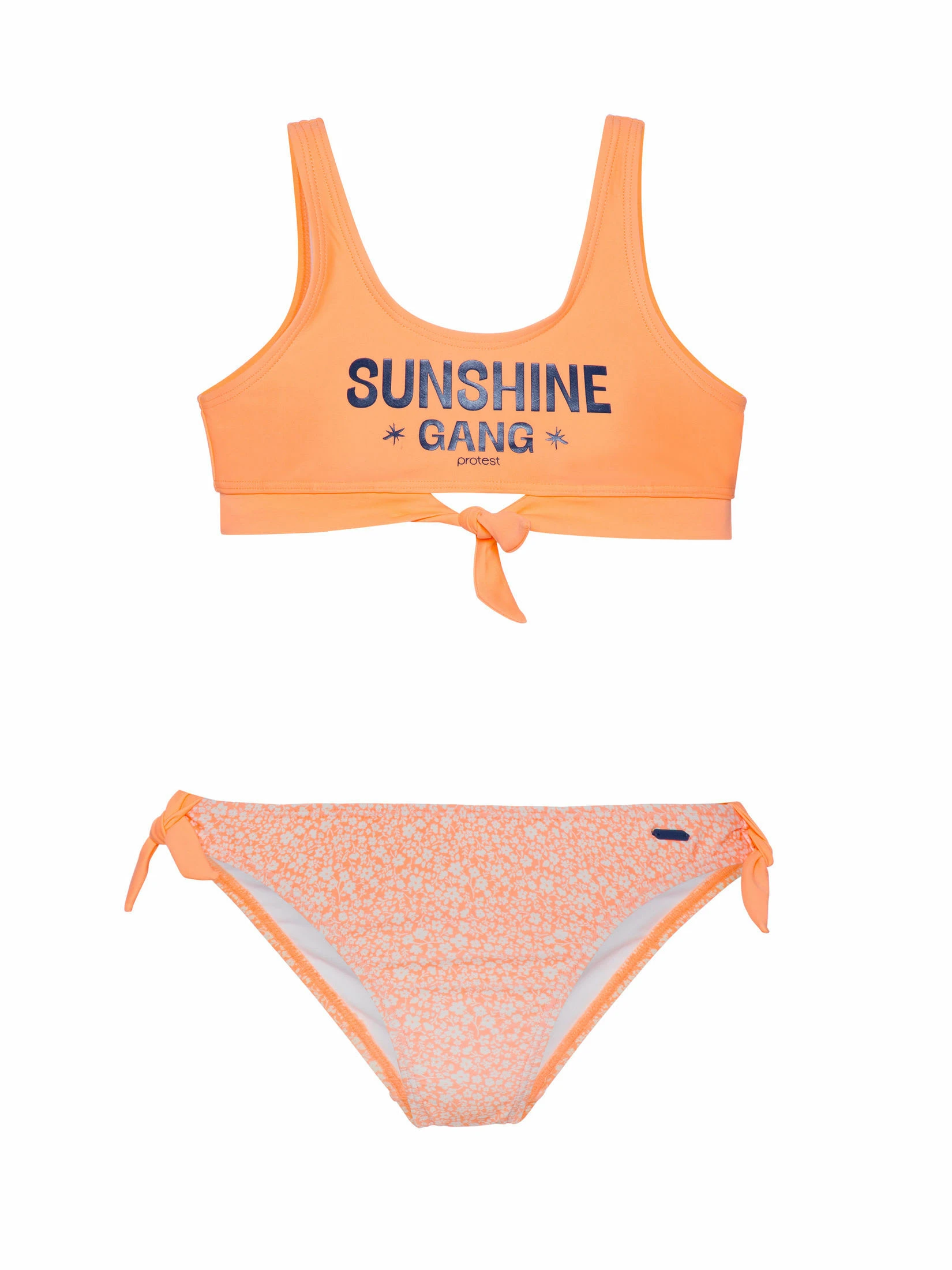 Der PRTNAOMI JR Bikini ist einmalig hübsch. Das Bralette-Oberteil ist mit dem Text „Sunshine Gang“ bedruckt, die Bikini-Hose in normaler Passform mit einem Allover-Muster aus der diesjährigen Sommerkollektion. Das Bikini-Oberteil und die Seiten der Bikini-Hose sind mit schicken Schleifen verziert. Die Größen 140-176 haben herausnehmbare Schaum-Cups. Der Stoff ist außerdem PFC-frei, um die Verwendung dieser Chemikalien und ihre schädliche Wirkung auf die Umwelt zu reduzieren. Der PRTNAOMI JR ist der perfekte Bikini für einen sonnigen Sommer.