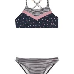 Mit dem PRTLEYLA JR aus unserer PVRE Green Serie präsentieren wir den ultimativen Sommer-Bikini für Teenager, der Style und Sportlichkeit kombiniert! Das Bralette-Top hat herausnehmbare Polster, die Komfort und Bequemlichkeit kombinieren, und kann im Rücken mit einer Schnalle befestigt werden. Die Träger an Schultern und Rücken sind verstellbar, um perfekten Sitz zu garantieren. Die Bikini-Hose hat eine normale Passform und Taille. Der PRTLEYLA JR präsentiert sich mit mehreren wunderschönen Mustern, die einen Kontrast bilden, was für einen coolen Effekt sorgt. Das Gewebe aus recyceltem Polyester ist PFC-frei, um die Verwendung dieser Chemikalien und ihre schädliche Wirkung auf unsere Gesundheit und die Umwelt zu reduzieren; stattdessen setzen wir auf ein umweltfreundliches Herstellungsverfahren. Der PRTLEYLA JR von Protest ist perfekt für sportlichen Abenteuer im Sommer. Erhältlich in den Größen 140-176.