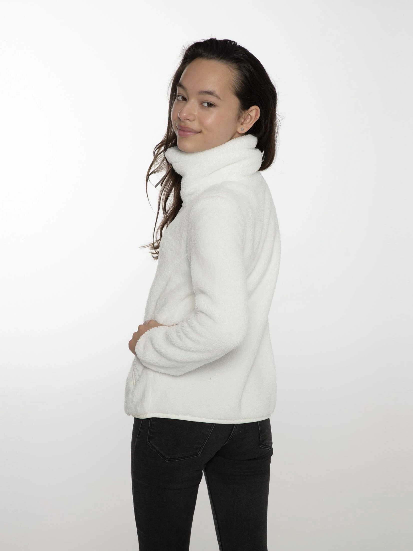 Wir präsentieren den tollen Riri JR. Dieser hochflorige Fleecepullover ist Teil unserer Geotech-Serie aus Funktionskleidung, die dich ans Ziel bringt. Dieser superweiche Fleecepullover ist atmungsaktiv, trocknet schnell und erinnert dank seiner hochflorigen Fasern an Teddystoff. Er hat Känguru-Seitentaschen und einen hohen Kragen, der dich vor den Elementen schützt. Der Riri JR hat eine weite Passform und normale Länge. Der Riri JR von Protest eignet sich perfekt, um die große weite Welt zu erkunden oder einen ruhigen Abend auf dem Sofa zu verbringen.