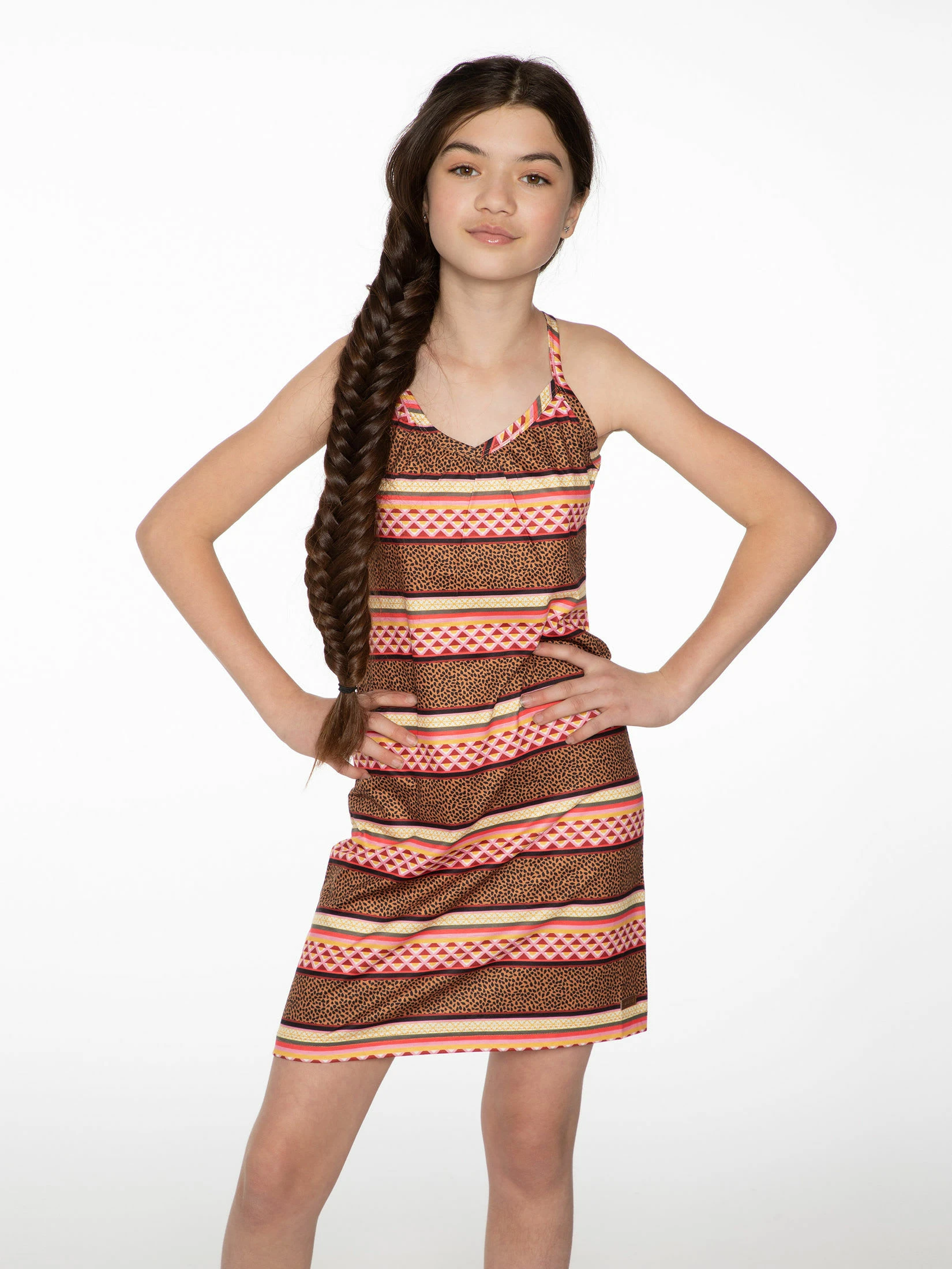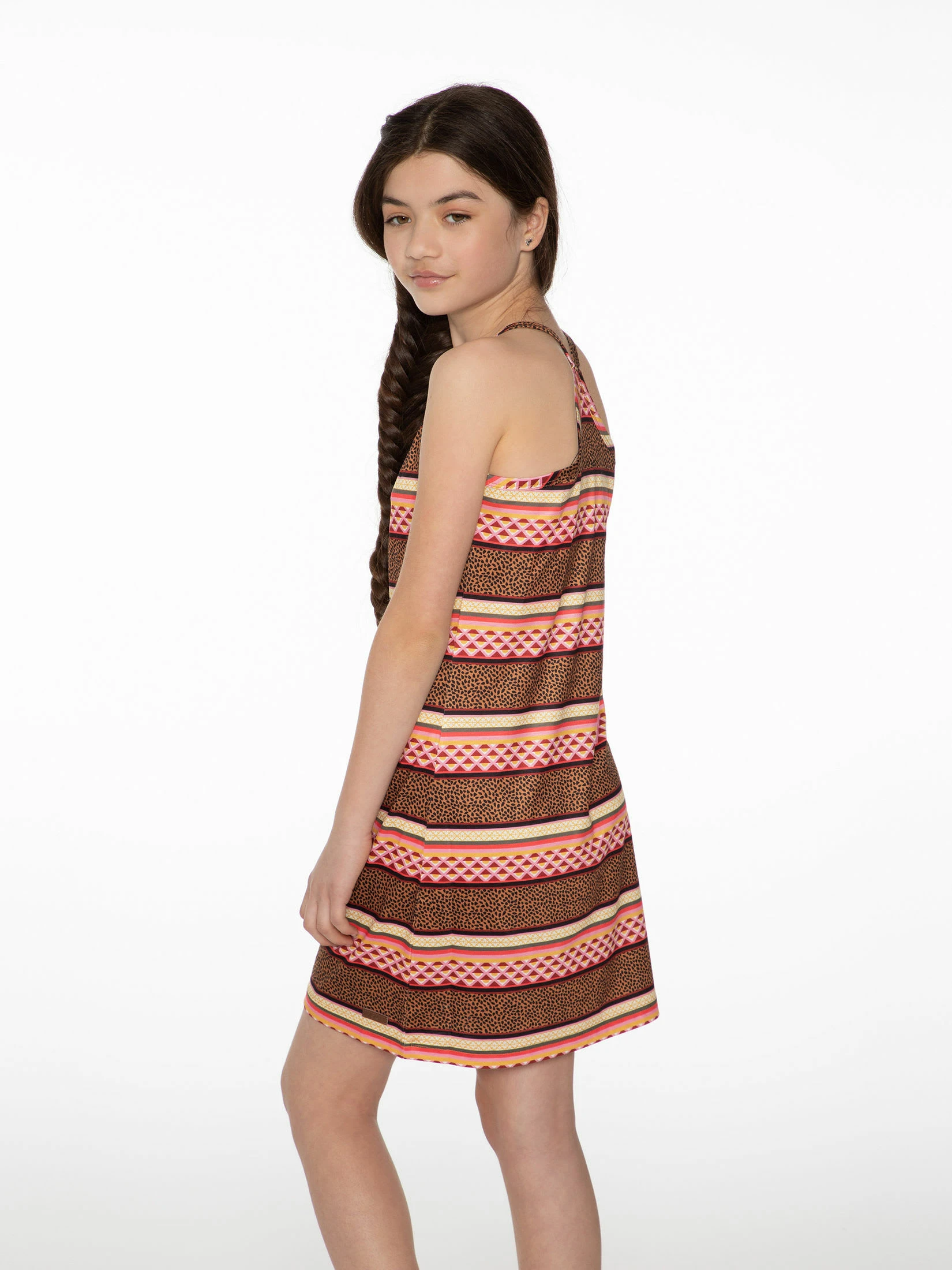 Wir präsentieren das Revolve 21 JR von Protest. Dieses bezaubernde Sommerkleid eignet sich ideal für den Strand oder für Sommerpartys. Es ist mit einem Streifenmuster bedruckt und ist an der Brust leicht gerafft. Das Kleid hat einen Racerback. Das Revolve 21 JR von Protest ist ein leichtes Sommerkleid. Das Model ist 1,52 m groß und trägt Größe 152.