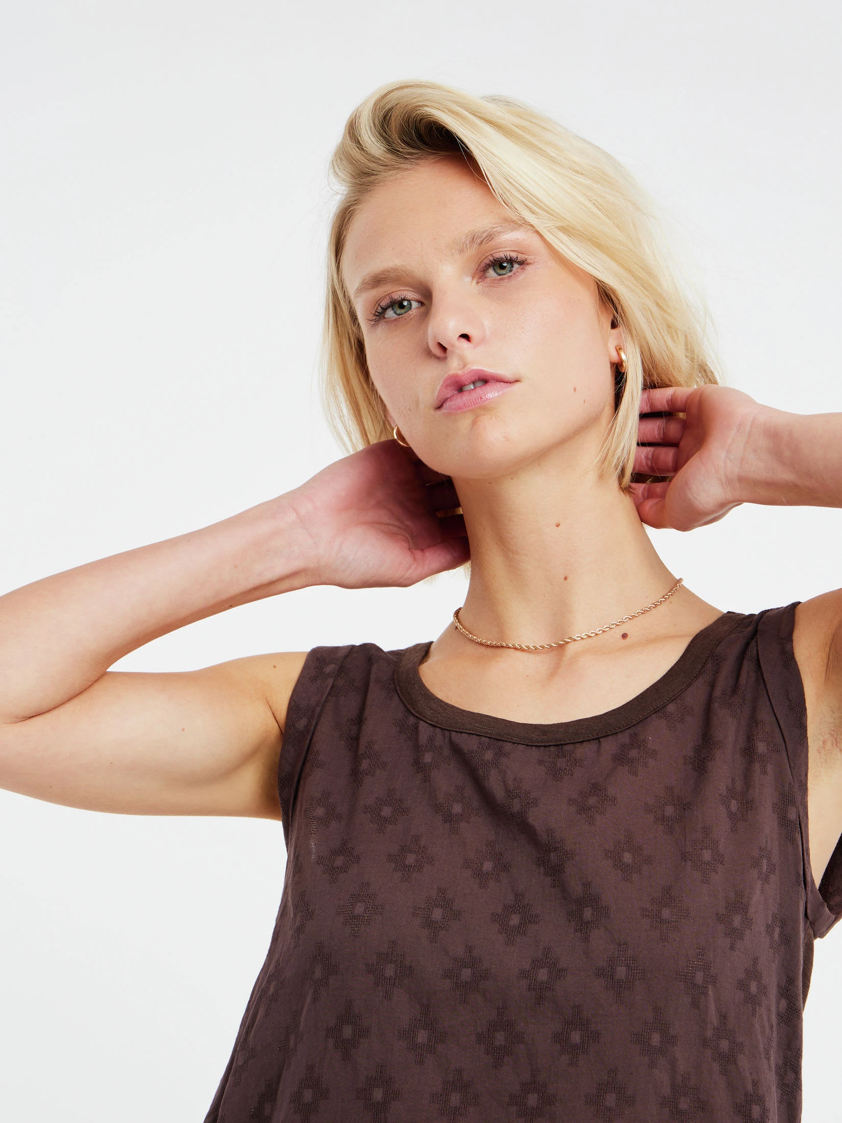 Das PRTJONNY von Protest ist das perfekte Singlet für den Sommer. Die Vorderseite ist aus 100 % Baumwoll-Jacquard hergestellt und hat ein Allover-Webmuster. Der untere Saum ist mit einem Spitzenband verziert, und die aufgerollten Ärmel sorgen für einen lässigen Look. Der Einsatz am Rücken ist aus einem Baumwoll-Slub-Mischgewebe hergestellt. Das PRTJONNY von Protest ist ein simples Top für den ganzen Sommer.